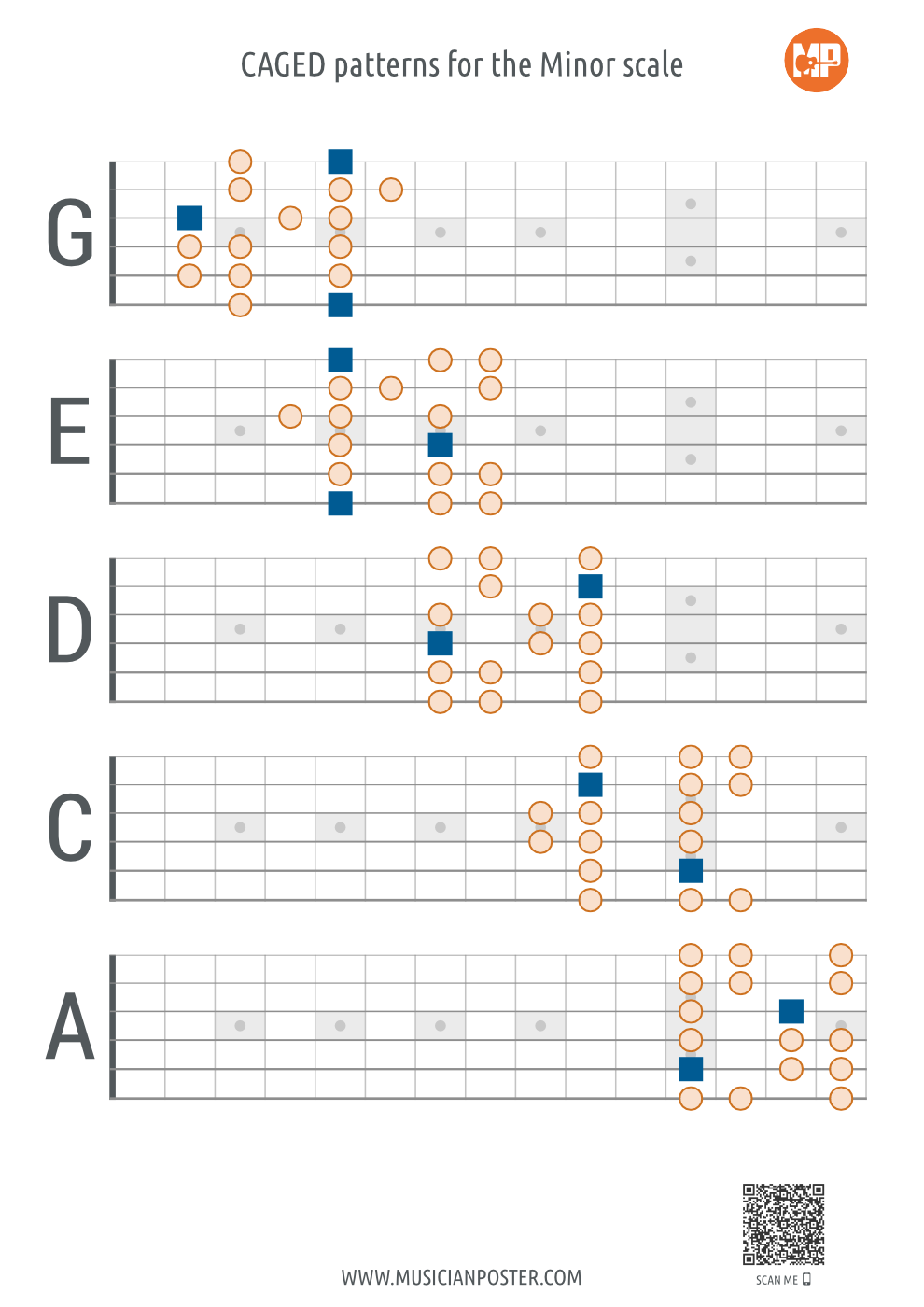 CAGED patterns for the Minor scale (minimalistic)